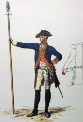 Von dort beorderte der König die Grenadiere nach dem Sieg bei Leuthen ins Feld zurück. Generalleutnant v. Fouqué führte sie zusammen mit einem Bataillon seines eigenen Regiments zum Korps Zieten, das den abziehenden Österreichern nicht energisch genug nachdrängte. Der General hatte nun selbst den Oberbefehl zu übernehmen und die Verfolgung wieder in Fluß zu bringen. Im Frühjahr 1758 wieder in alter Zusammensetzung (12/39) selbstständig, erhielt das Bataillon zugleich seinen neuen Kommandeur mit Major Abrahahm Friedrich v. Pieverlingk (InfRgt No. 12). |